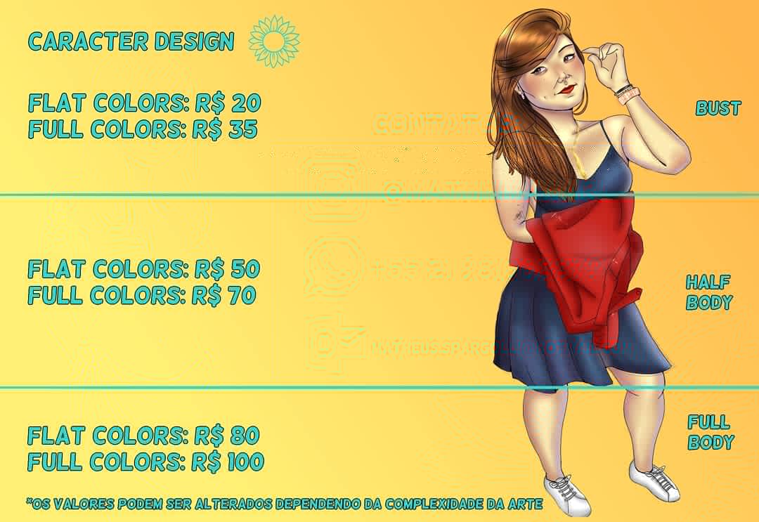 Amigos, Como muitos eu fui prejudicado pela Pandemia e por isso estou desenhando por encomenda. Fiz esse layout para facilitar o entendimento dos valores e do serviço que posso oferecer. Conto com o apoio de vocês! O like e o RT me ajudam muito.