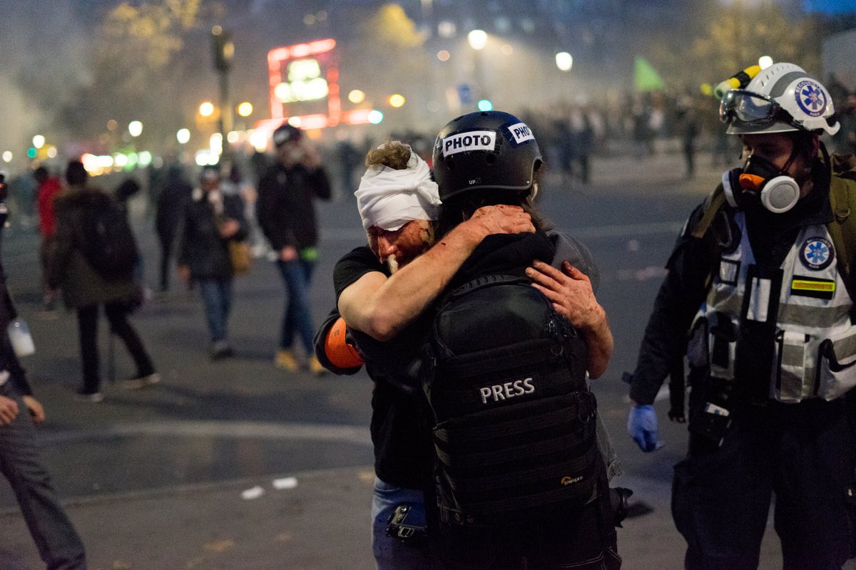 Award winning #Syria|n photojournalist Ameer AlHalabi, has was assaulted by cops in #Paris while covering protests against a law giving cops immunity! What kind of example is this setting for the dictators & media suppressors in the world? #JournalismIsNotACrime pic.twitter.com/q8c4uAKh9o