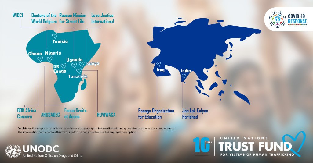 Victims of #HumanTrafficking cannot be forgotten during #COVID19 crisis. @UN Voluntary Trust Fund #UNVTF10 funds 10 new NGOs supporting survivors in 🌍West, East and North Africa including #Nigeria 🌏South and Western Asia ➡️ https://bit.ly/2wr03iJ  #EndHumanTrafficking. pic.twitter.com/2ALbpLJ5ZH