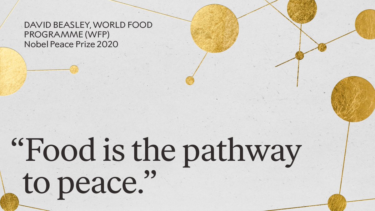Today the 2020 Nobel Peace Prize was delivered to the World Food Programme, @WFP. Read the full acceptance speech by WFP Executive Director David Beasley: https://www.nobelprize.org/prizes/peace/2020/wfp/acceptance-speech/ … pic.twitter.com/dzUTv2BHsh