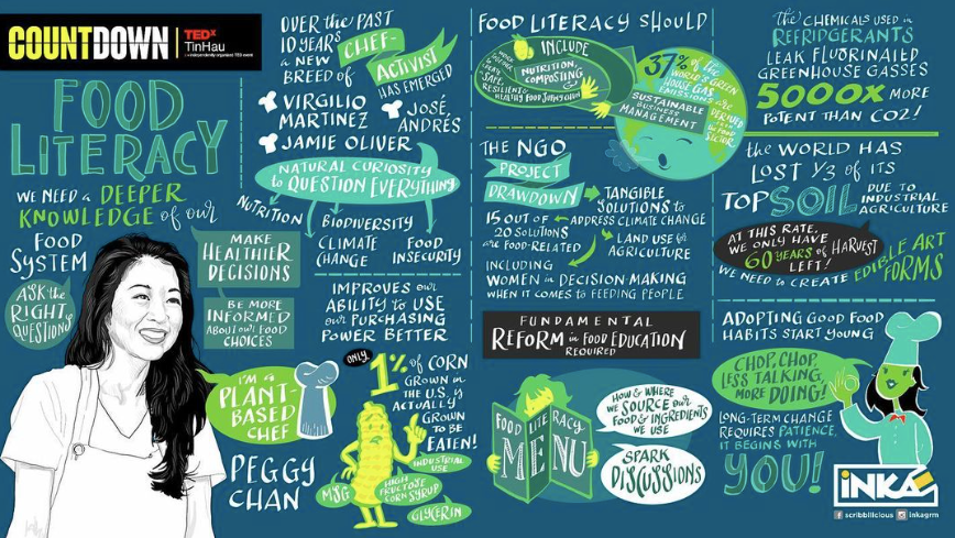 Check out this @TEDx illustration summarising Chef and #FoodSystemsHero @PeggyChan55’s work on #FoodLiteracy