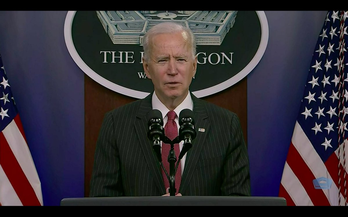 JUST IN: Biden at the Pentagon says, "I'm the first president in 40 years, I'm told, who had a son or a daughter serve in a war zone," and pledges "a responsible end to wars that have dragged on for far too long."pic.twitter.com/GYomspW3g7
