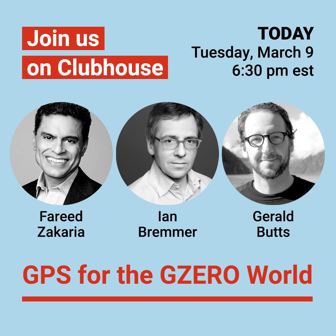 📣LIVE NOW on @joinClubhouse @ianbremmer @FareedZakaria @gmbutts talking #globalpoloticshttps://twitter.com/ianbremmer/status/1369342237990092800 …