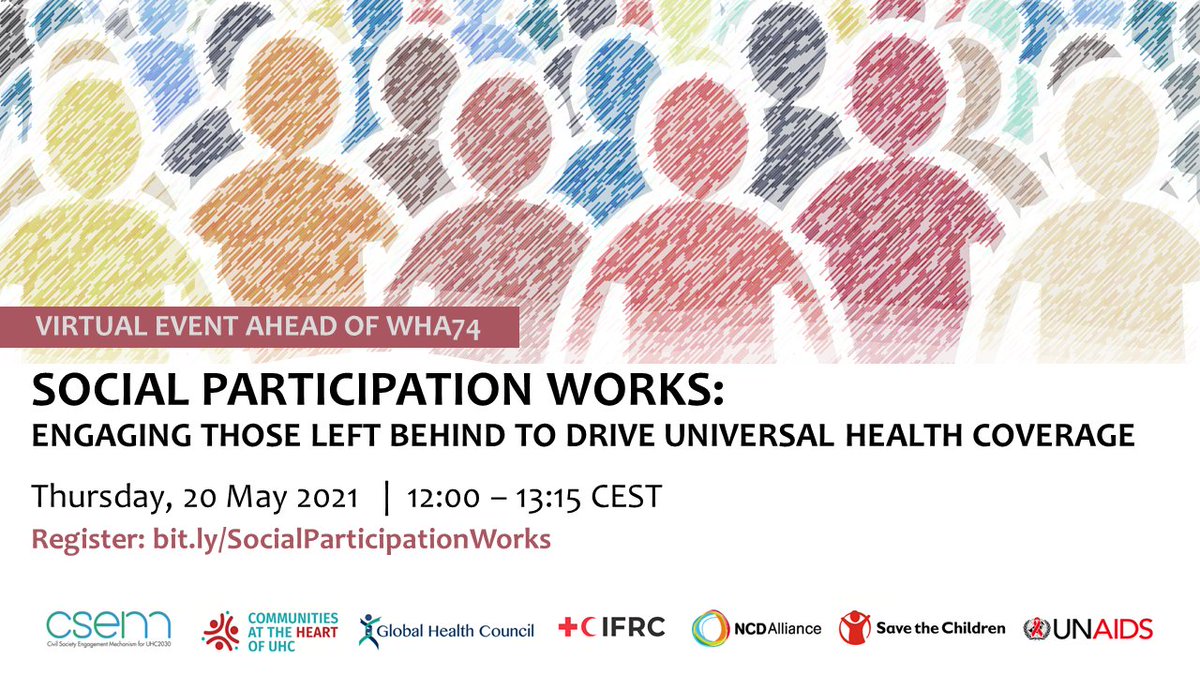 Ahead of #WHA74, join reps of #civilsociety, communities, governments, UN agencies, & other #UHC stakeholders to discuss social participation to achieve #HealthForAll and advocate for the rights of those left behind to participate in governance.