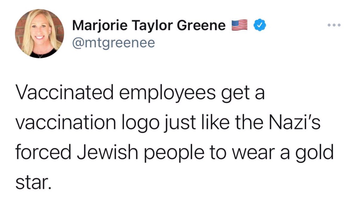 Jeff Miller made that comment. He is known as: board member of the Republican Jewish Coalition; member-US Holocaust Memorial Museum Council; major backer of TFG; helped raise $?B for TFG reelection; served as a political adviser to KMc. https://www.cnn.com/2021/05/25/politics/marjorie-taylor-greene- …