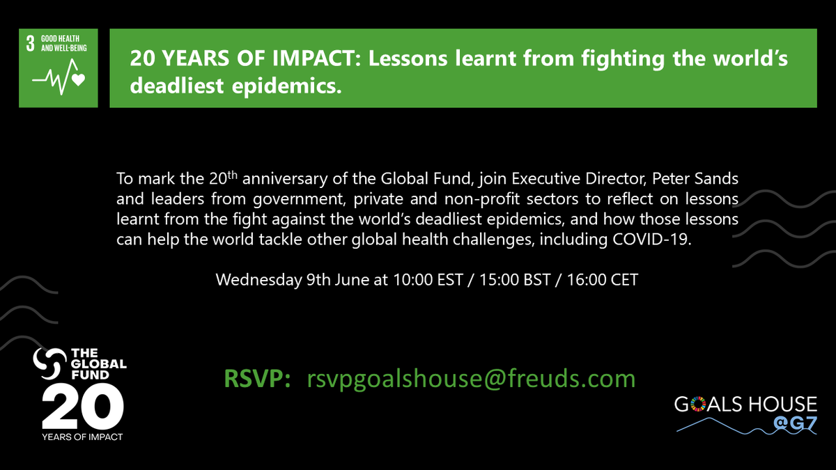 LIVE NOW: A brilliant panel on the 20th anniversary of @GlobalFund, lessons learned fighting HIV, TB & malaria and what we can do right now and in the future. Join us! #GlobalFund20 #G7 http://g7.goalshouse.com https://twitter.com/GlobalFund/status/1402249621645180934 …