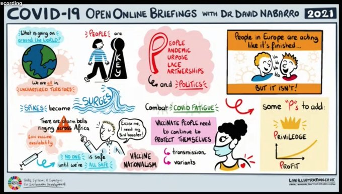 Must not miss Friday's bi-weekly Briefing by @davidnabarro, Special Envoy on #COVID19 to @WHO, & the @4SD_info team. This timely, high-level interactive session gives you an opportunity to connect directly w/experts & kindred spirits from across the globe. We're #InThisTogether!https://twitter.com/davidnabarro/status/1415339090128609281 …