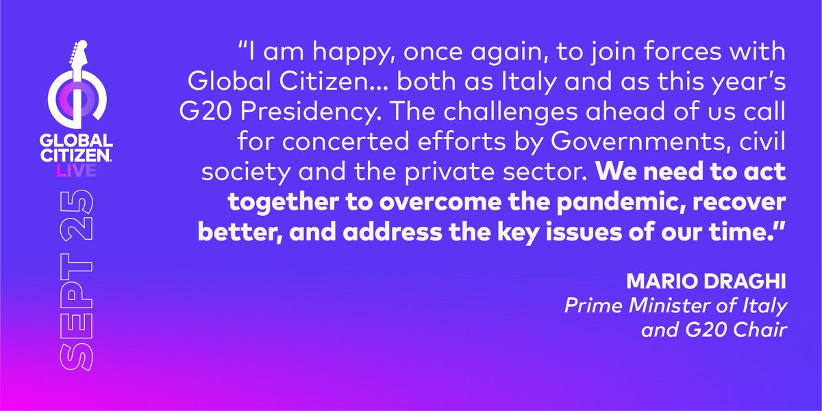 "We need to act together to overcome the pandemic, recover better, and address the key issues of our time, including climate change, enduring inequalities, and the need for sustainable and inclusive growth.” #MarioDraghi #GlobalCitizenLive https://glblctzn.co/bhXapF9HDib pic.twitter.com/iCMXyGgMuj