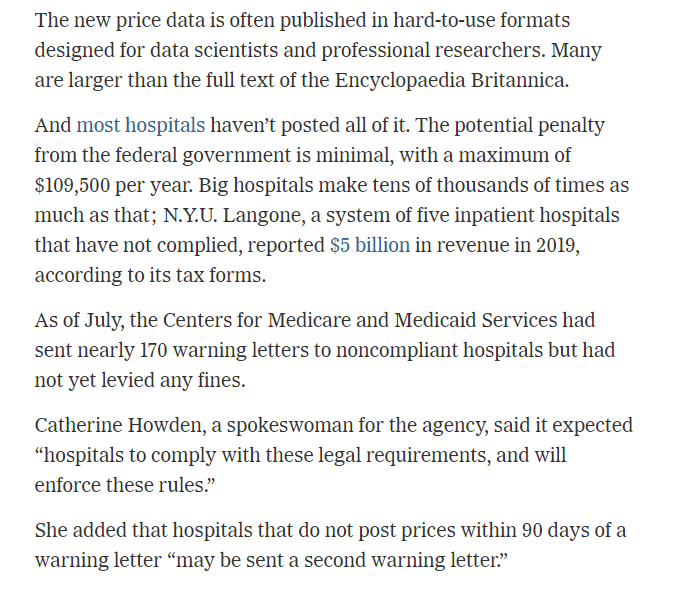 The government required hospitals to start showing prices and it's a perfect example of how laws are meaningless without any enforcement https://www.nytimes.com/interactive/2021/08/22/upshot/hospital-prices.html …pic.twitter.com/4RafsoAogp