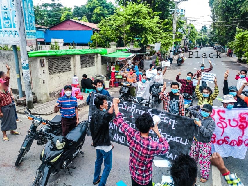 Mandalay residents called for boycotting payments of any kind to the military regime during a protest on Thursday. (Photo: Poison/Black) #WhatsHappeningInMyanmar pic.twitter.com/XYTNS5aIBi