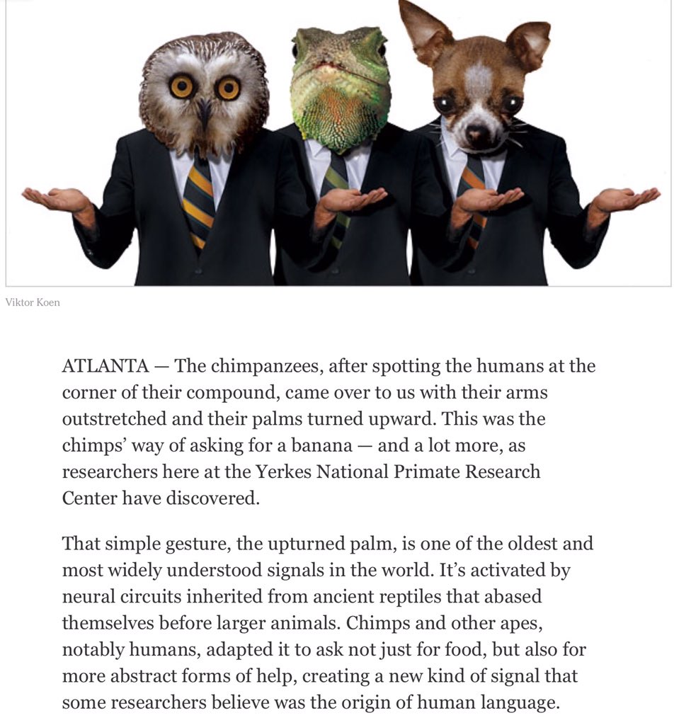 the upturned palm was 'inherited from ancient reptiles that abased themselves' - that sums it up.