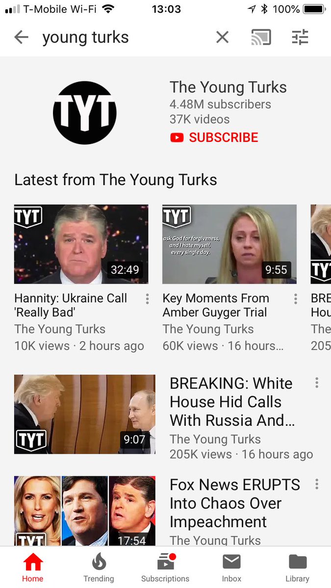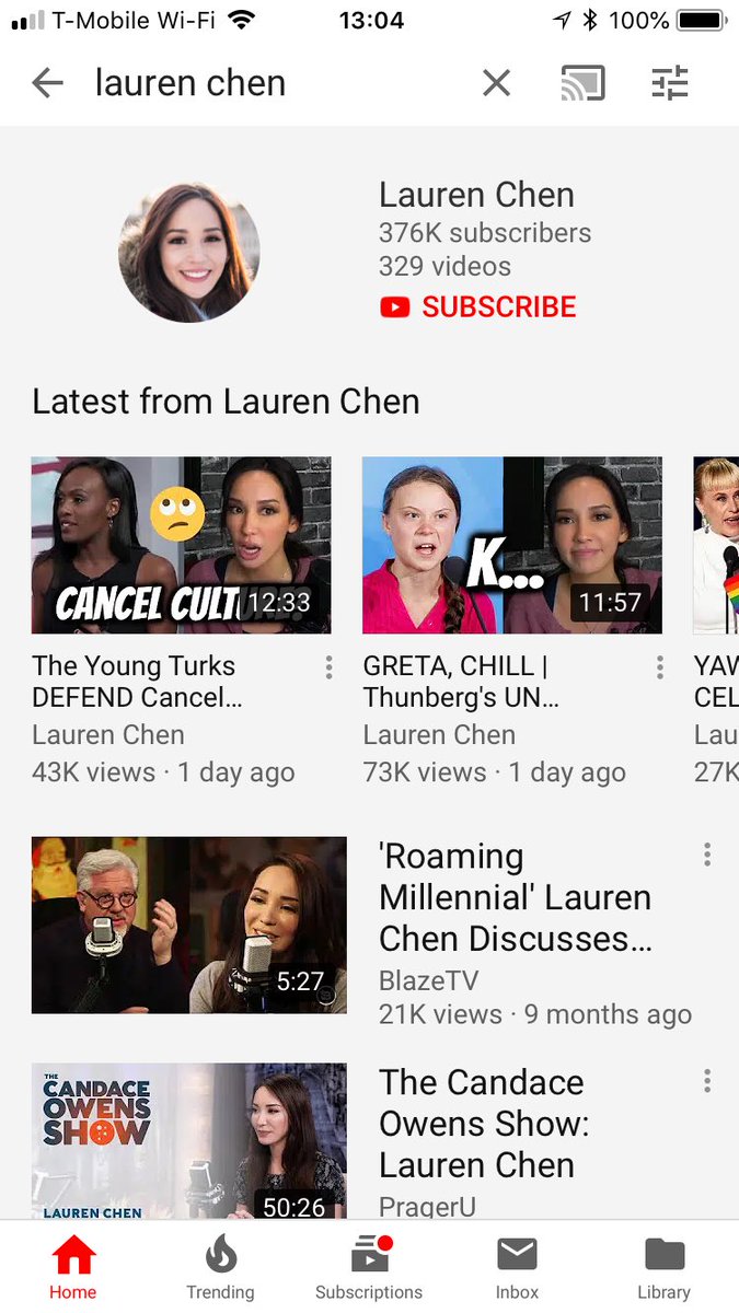 Opened my @YouTube app and did three searches. All returned the channel and “Latest from...,” but the search results were markedly different. Videos from Young Turks were top of the list, while @scrowder and @TheLaurenChen showed other videos about them. Something def is up.pic.twitter.com/RlXZZoBsG9