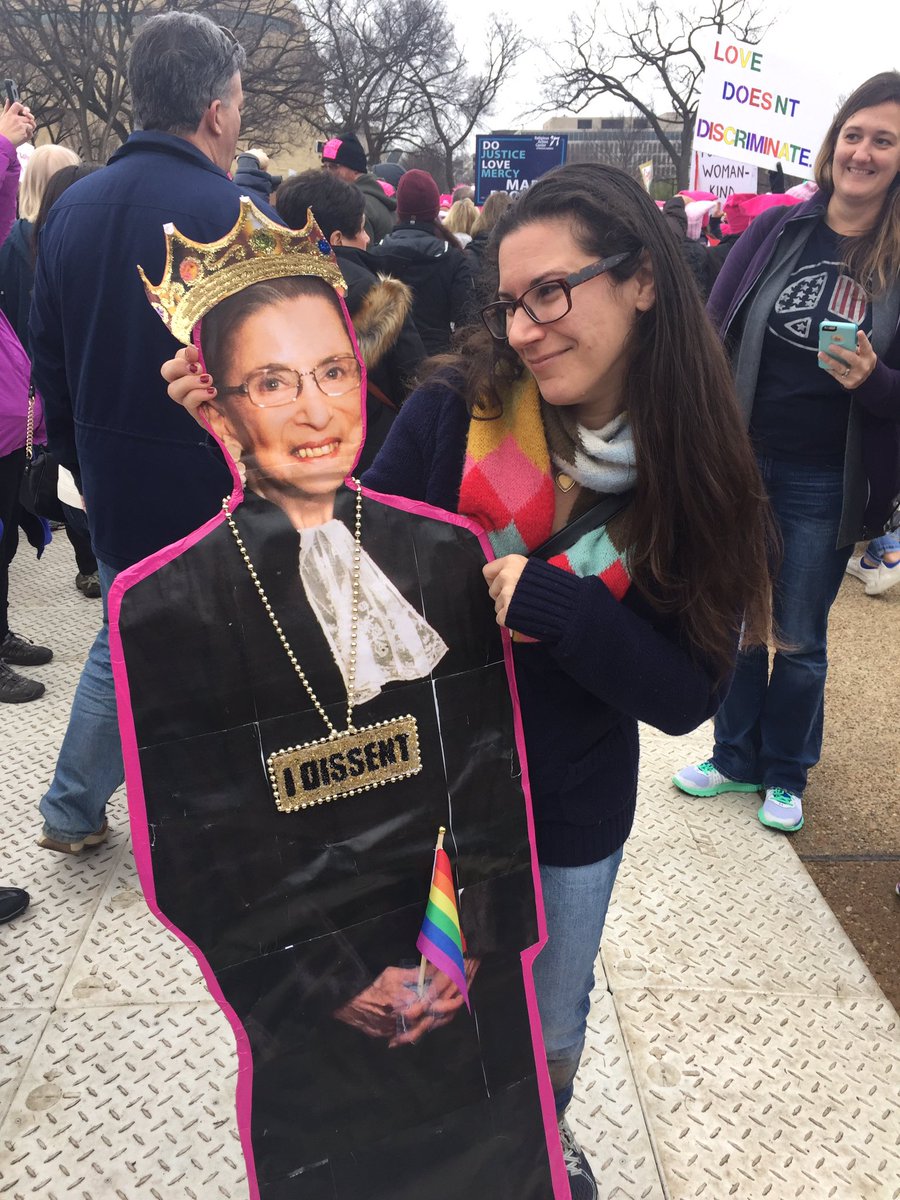 I asked a woman if I could take her picture with RBG, she said do you want one that's why she came? #WomensMarch whose chopping onions?pic.twitter.com/skqQRw9q1C