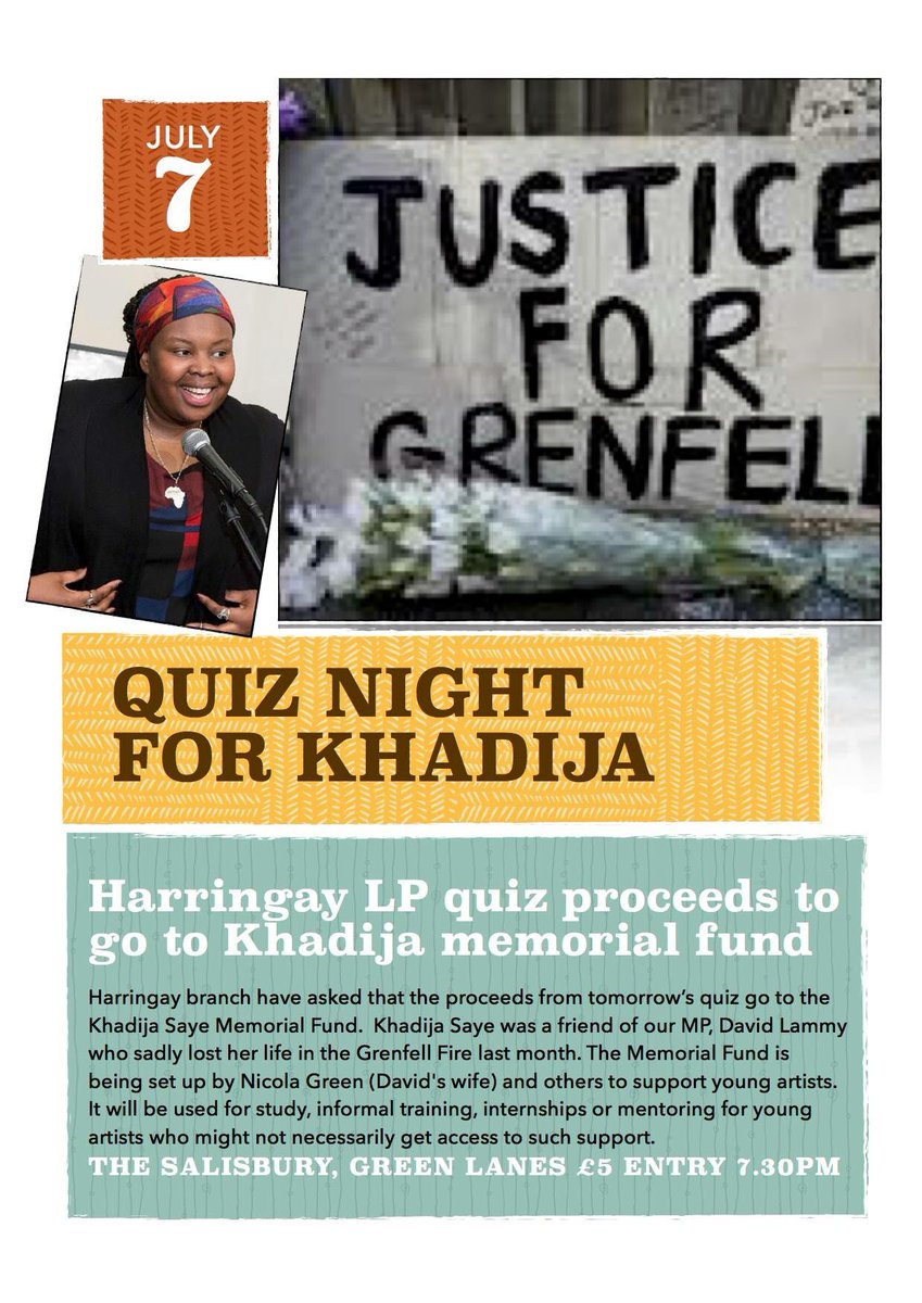 Our quiz night tomorrow at the Sailsbury will donate all proceeds to the "Khadija Saye Memorial Fund". Please comepic.twitter.com/h2K8BqEd4u