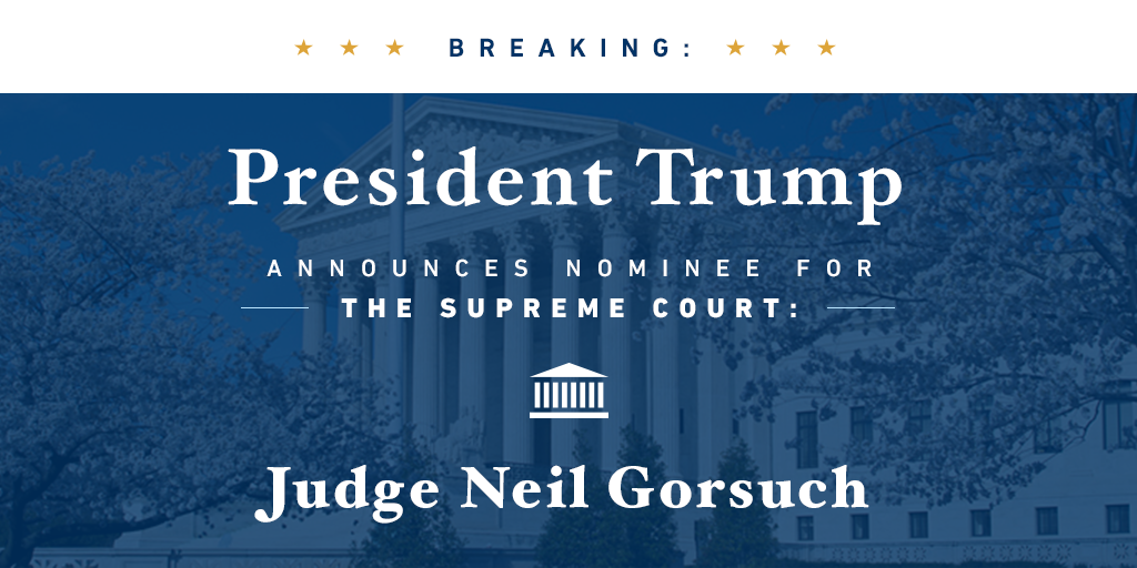 @GorsuchFacts: Trump has nominated Judge Neil Gorsuch for#SCOTUS!#JusticeGorsuch pic.twitter.com/ygLsY10l4O ConfirmGorsuch#PJNET