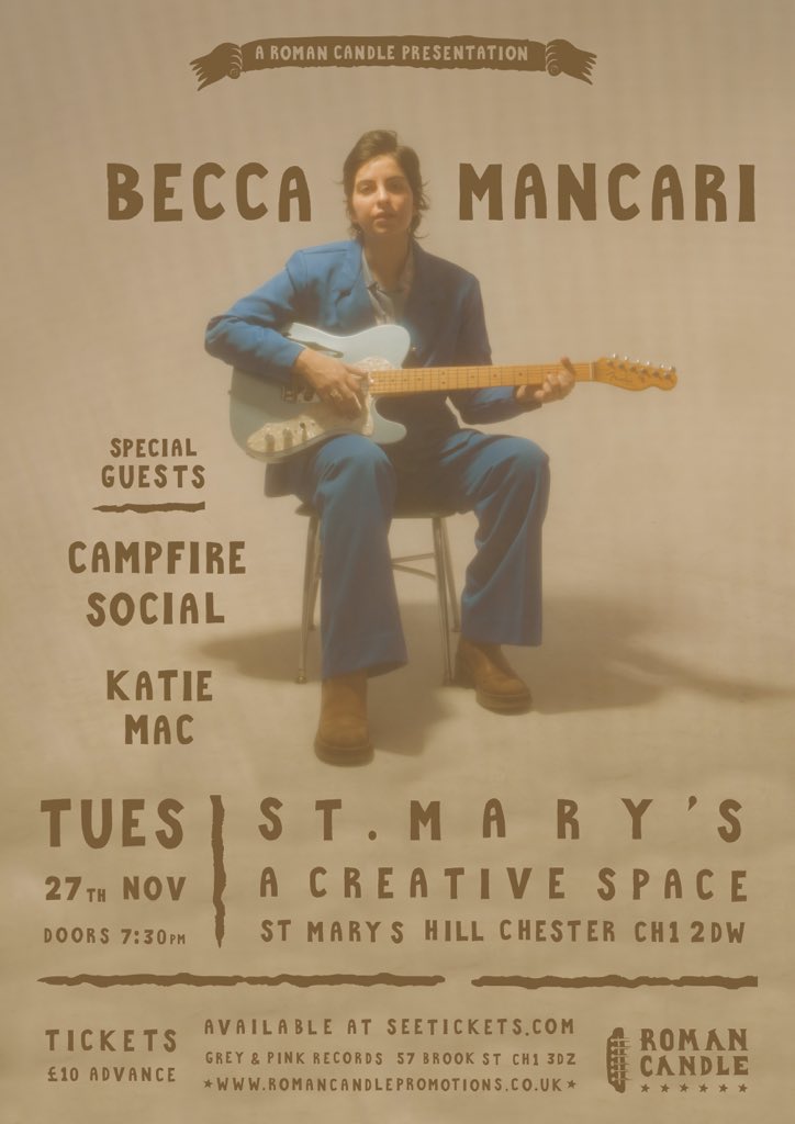 So excited that it’s less than a month until I support Becca Mancari alongside CAMPFIRE SOCIAL for Roman Candle Promotions. Get your tickets now: https://www.seetickets.com/event/becca-mancari/st-mary-s-a-creative-space/1273041 …pic.twitter.com/b43Lx5GG7q