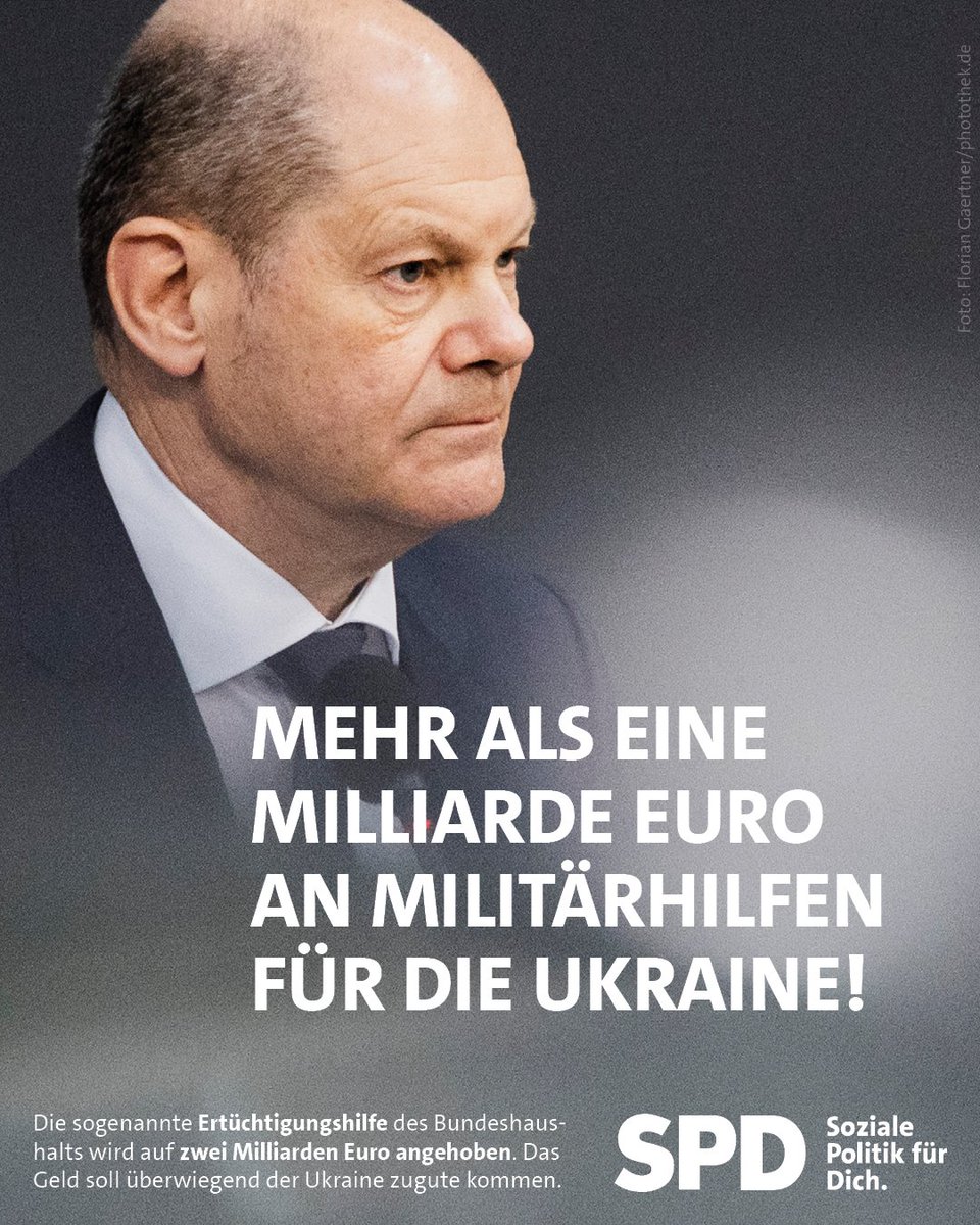 @OlafScholz hat angekündigt, der#Ukraine mehr als eine Milliarde Euro an Militärhilfen zur Verfügung zu stellen. Die sogenannte Ertüchtigungshilfe – eine Initiative zur Stärkung der Sicherheit ausländischer Partner – soll auf zwei Milliarden Euro angehoben werden.pic.twitter.com/Yrqg8bSRCU