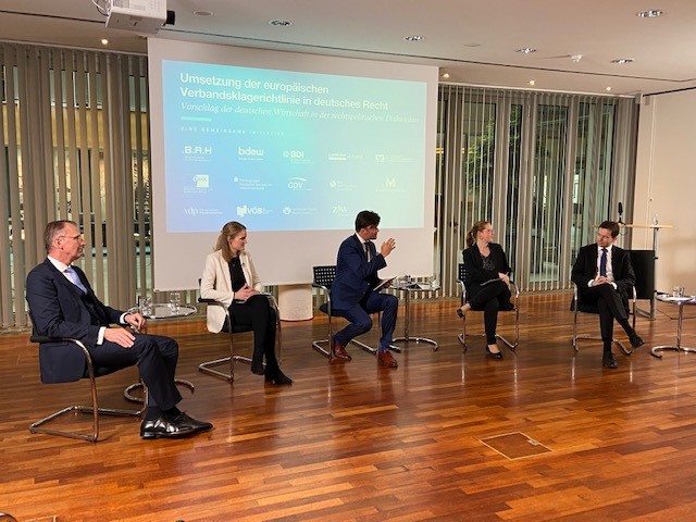 #Verbändehaus: Prof. Dr. Bruns (@UniFreiburg),@sonjaeichwede, Moderator@hwieduwilt,@KatrinHelling und@MartinPlumMdB diskutieren über die#EU-#Verbandsklagerichtlinie.