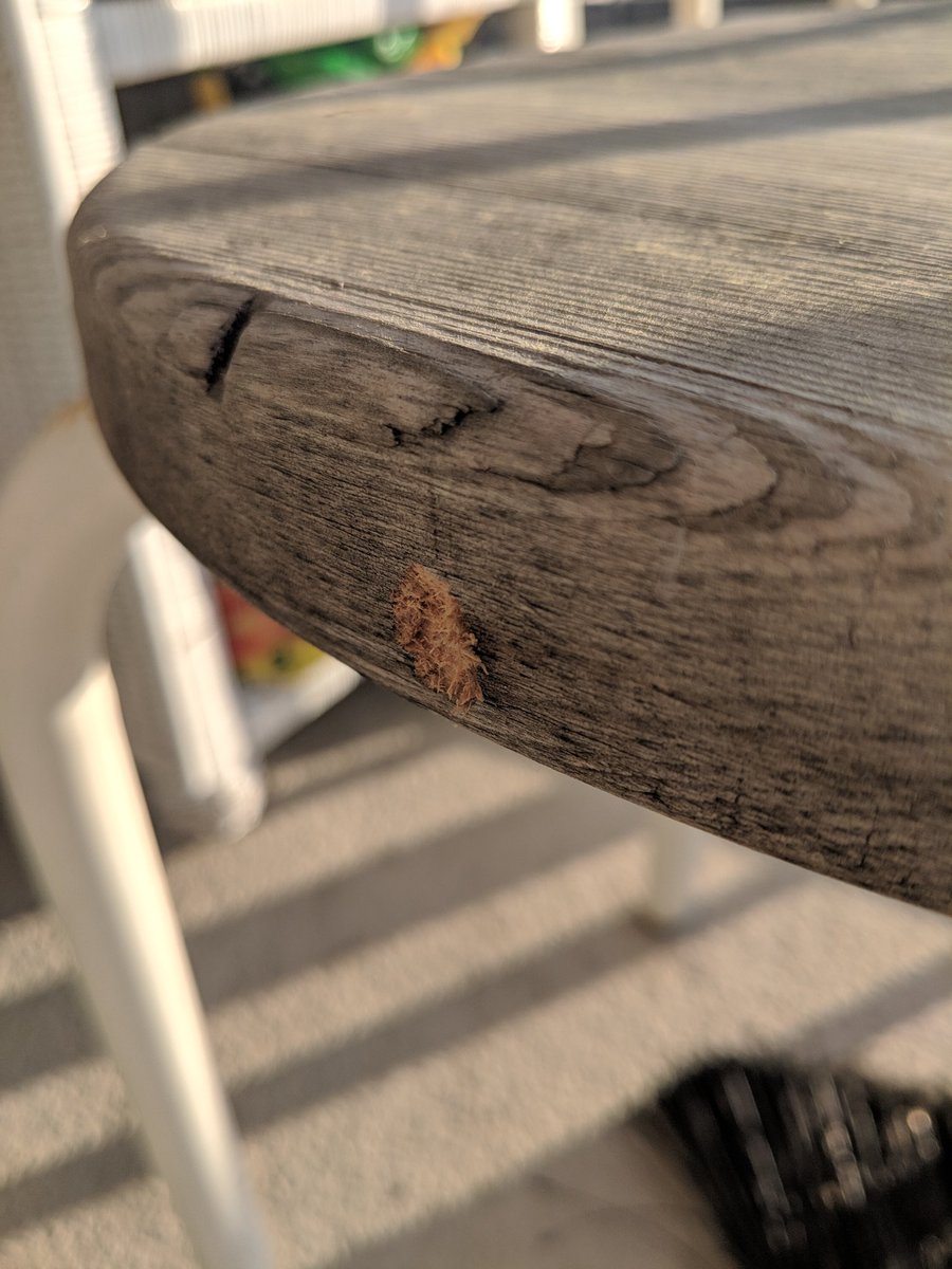 Trying to enjoy my sunset wine when a CARPENTER BEE STARTS EATING MY TABLE.pic.twitter.com/OGvIEI8EPx