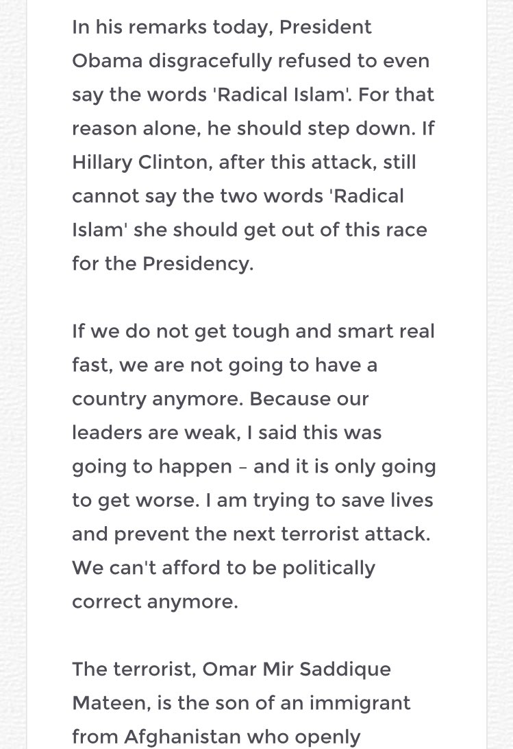 How about this compromise: Obama sez "Islamic Terrorism" Trump and Rubio say "GAY HATE CRIME"?