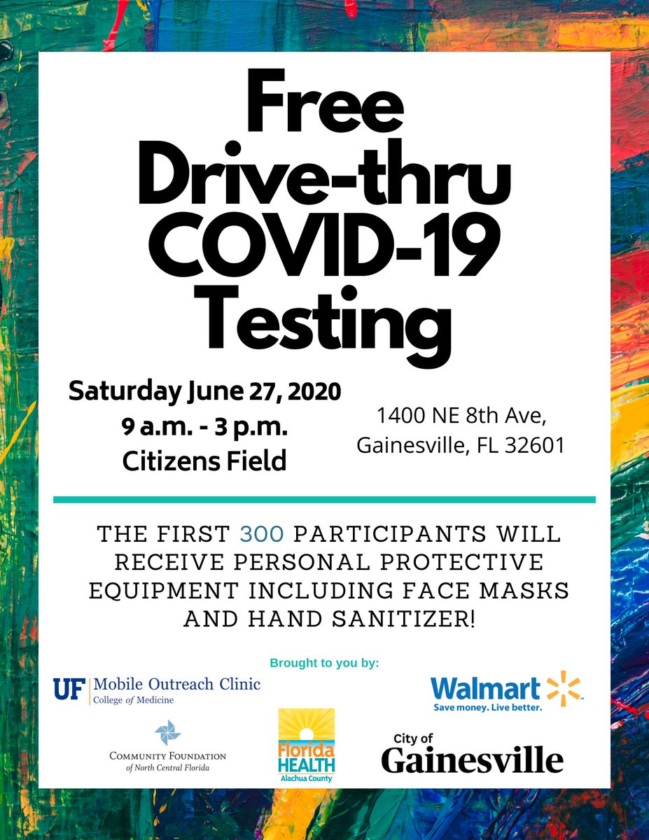 As we have a second consecutive day of cases over 5,000 here in Florida. A quick reminder that this Saturday the @GainesvilleGov is hosting a free drive-thru covid testing site at Citizens Field.https://twitter.com/GainesvilleGov/status/1275815557993041920 …