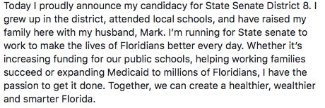 Today I proudly announce my candidacy for State Senate District 8. #sayfie #flapolpic.twitter.com/rOe9EeO8ii