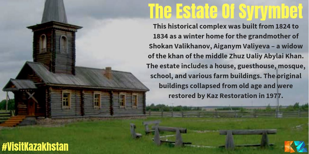 The Estate of Syrymbet is a historical complex that was a winter home for the grandmother of Shokan Valikhanov, Aiganym Valiyeva. The estate includes a house, guesthouse, mosque, school, and various farm buildings #SacredGeography #NorthKazakhstanpic.twitter.com/IfMsTyP6SZ