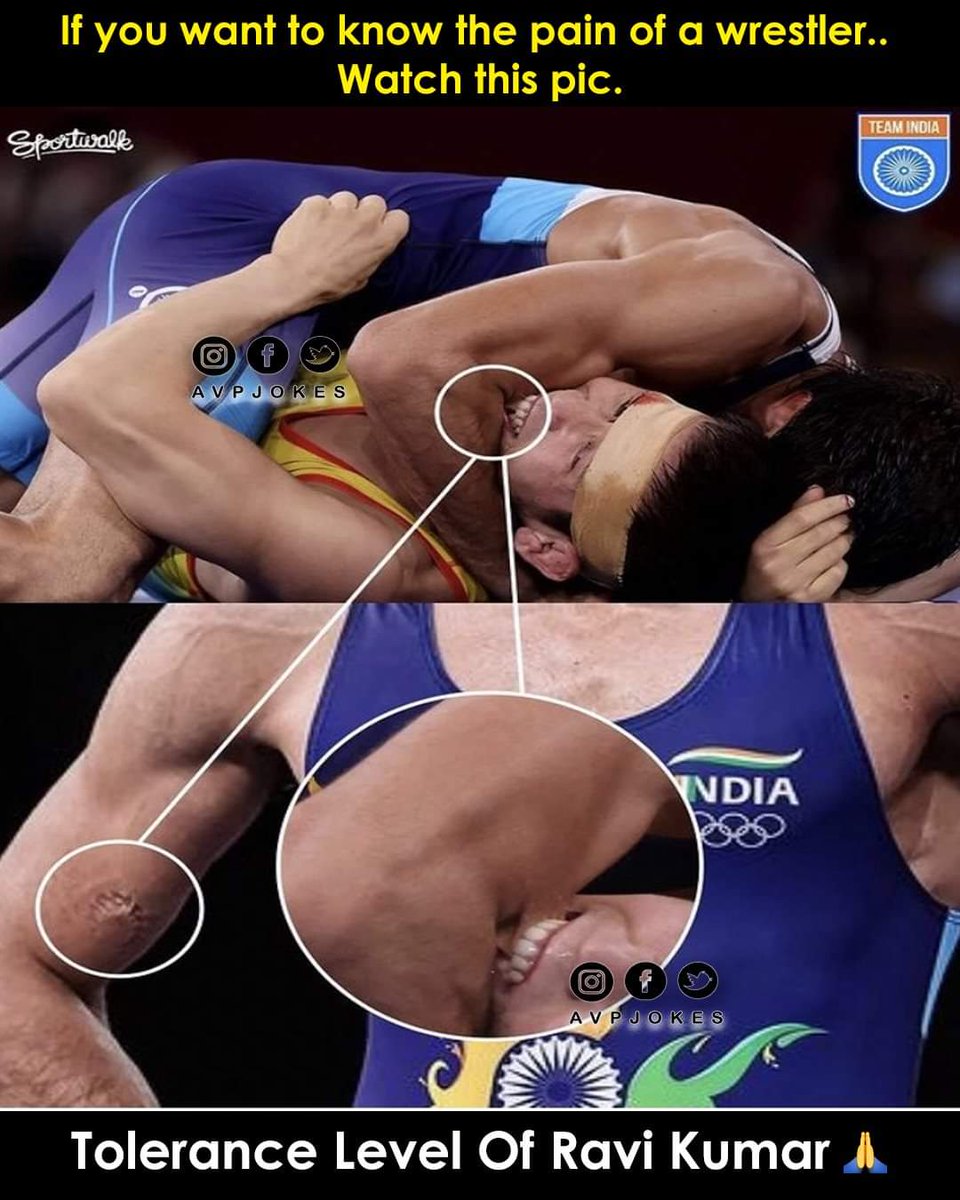 Kazakh Olympic team management should feed their wrestlers well because they start biting their opponents when they are losing.https://www.outlookindia.com/website/story/sports-news-tokyo-olympics-ravi-dahiya-endures-bite-by-nurislam-sanayev-but-is-fine-says-support-staff/390491 …
