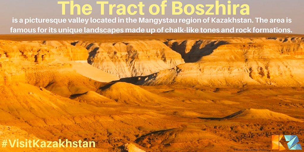 The tract of Boszhira is a picturesque valley located in the Mangystau region of Kazakhstan. The area is famous for its unique landscape made up of chalk-like tones and rock formations. #VisitKazakhstan #TravelTuesdaypic.twitter.com/znsgS1m3C6