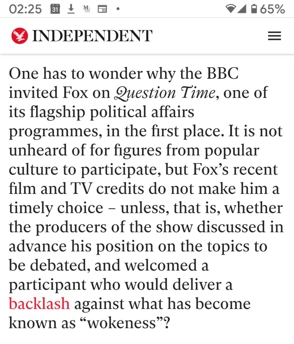 There's a factual error in the piece. The reference to someone unloading a shotgun in Laurence Fox's face came directly from vast online abuse he received after the appearance https://twitter.com/CHSommers/status/1218708190176608256?s=19 … It's chilling you question why voices disagreeing with your own should be heard.pic.twitter.com/BI0PFv1ARl