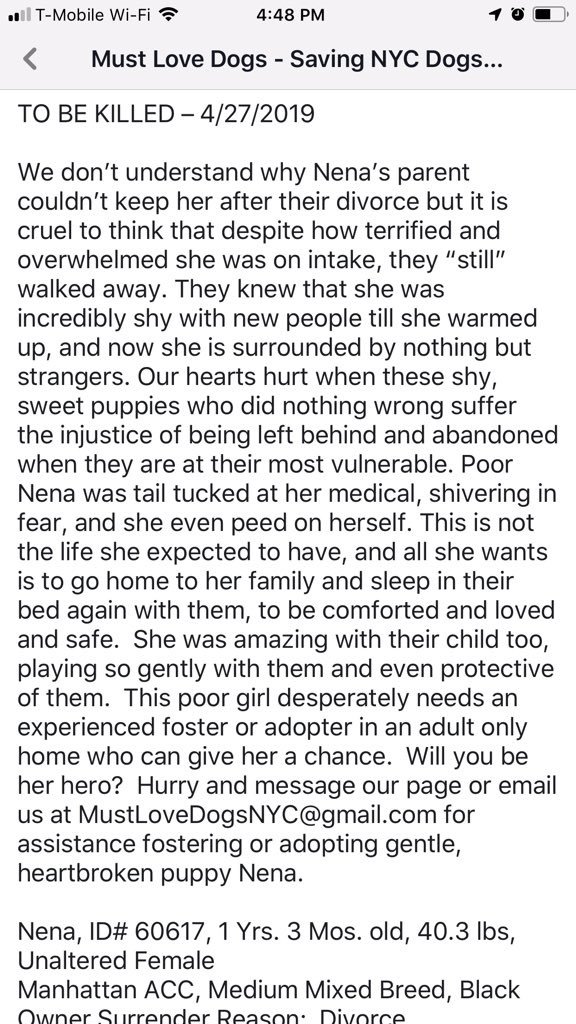 @chortletown to attract a Rescue to save her life. The key: sharing Nena’s story so PLEASE RT! https://www.facebook.com/mldsavingnycdogs/photos/a.745242932328646/969842649868672?type=3&sfns=mo …pic.twitter.com/t0bAuy5WvD