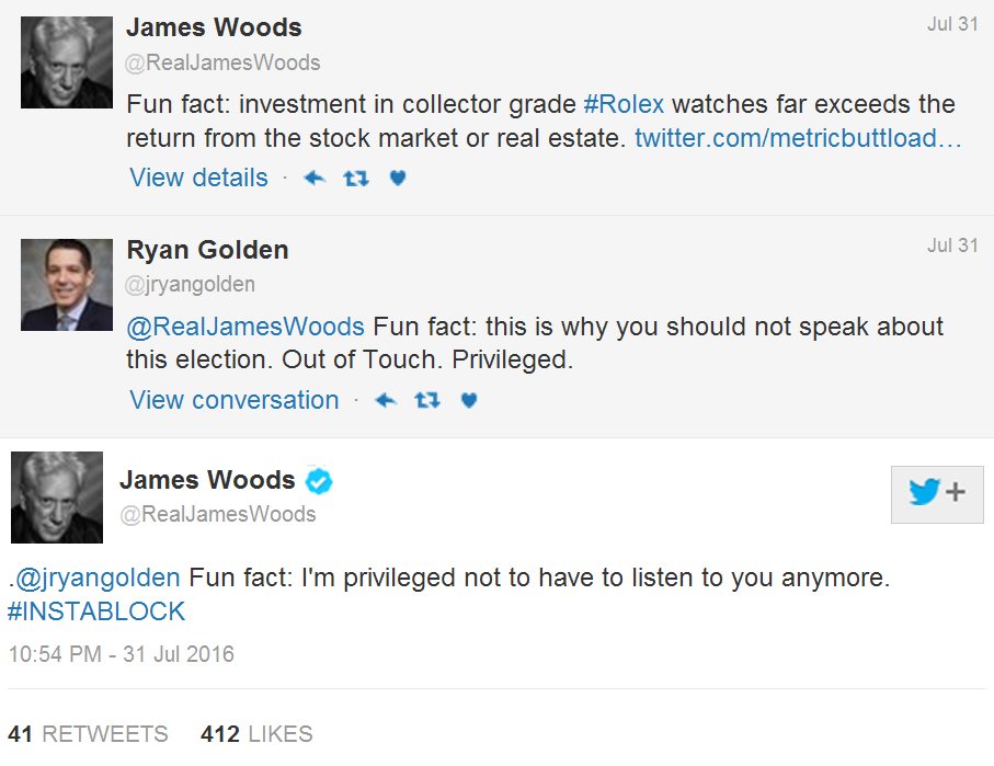 James woods is a real nutbag. Also what did he say he blocked me ages ago!