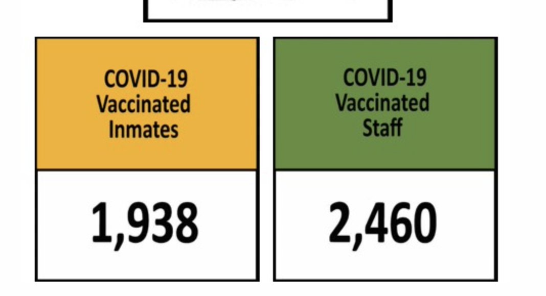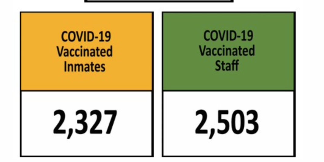 Modest uptick of corrections staff who have gotten the #CovidVaccine since last week. That's about 46% of employees. Roughly one-in-four incarcerated people have gotten the #COVID shot.pic.twitter.com/QUPfLMRiUv