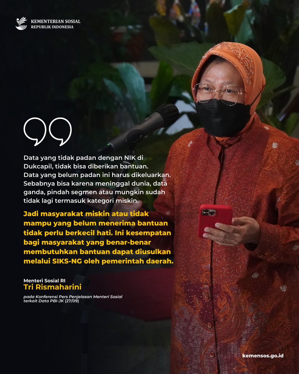 Per penetapan bulan September 2021, terdapat sekitar 9 juta data yang tidak padan yang perlu dihapus. Misalnya data penerima yang meninggal, mutasi atau pindah segmen, data ganda, dan sebagainya. Semakin baik data, semakin tepat sasaran penyaluran bantuan.pic.twitter.com/pGbY3uWFqN