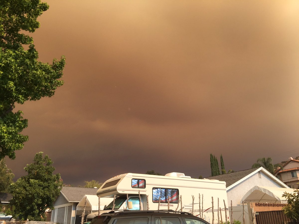 The sun is looking apocalyptic and ash falling like snow in Pasadena as a result of the
