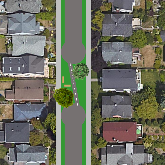 I call this a cul-de-trac. You can drop it in the middle of any neighborhood street for instant traffic calming, bike safety, and community space, while preserving vehicular access.pic.twitter.com/SNMNdUGDSx