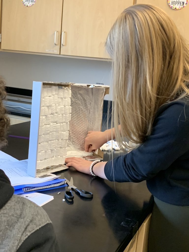 8th graders designing a lunchbox that minimizes heat transfer through convection and radiation.
