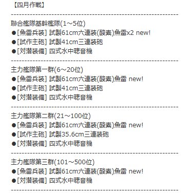 【四月作戦報酬】 先ほど運営コミュニティより発表されました。 【新装備】試製61cm六連装(酸素)魚雷 が実装されました。pic.twitter.com/IWok3mK08R
