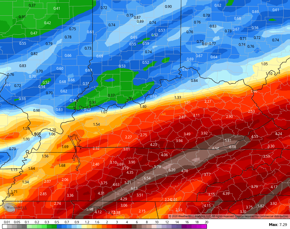 Many areas of southern Kentucky have already picked up 1"-2" of rain and we have a lot more to go. The GFS is forecasting big time rains across the south and southeast through early Thursday. There are no active Flood Watches.
