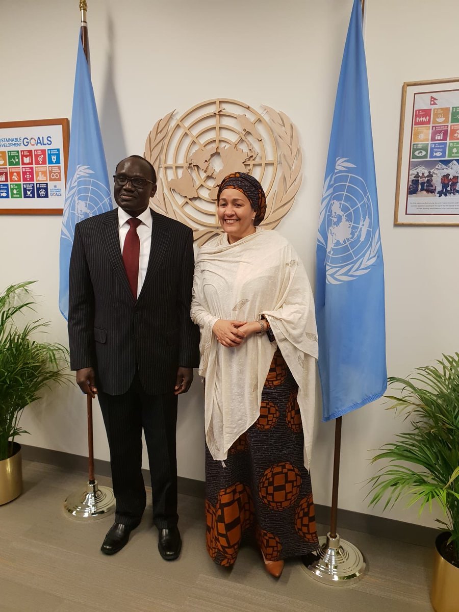 Amb.Lazarus Amayo, the Permanent Representative of Kenya to the UN today met with H.E Ms. Amina Mohamed ,the UN Deputy Secretary General and discussed issues of mutual interest including preparations for the forthcoming Climate Action Summit and UN Environment Assembly .pic.twitter.com/jdJ1B9MiuI