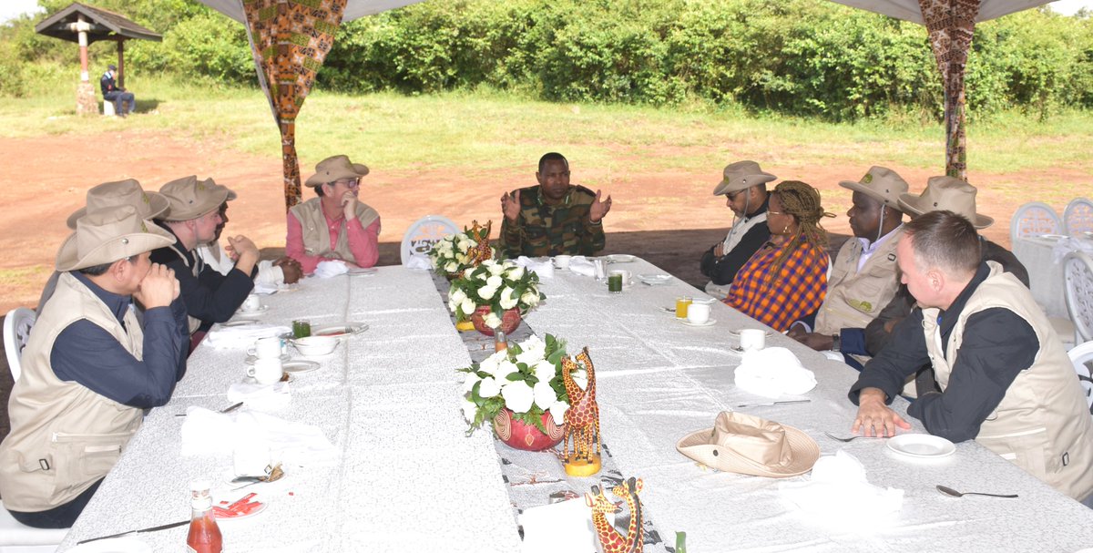 Amb. Lazarus Amayo, with visiting Ambassador's in Nairobi National Park on the sidelines of "The changing face of terrorism and extremism" seminar. They shared challenges and experiences in #Wildlifeconservation and agreed that climate change isa growing risk factor to wildlife.pic.twitter.com/HQ5HdSfeG1
