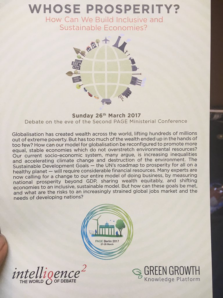 Happening in 30min: debate on "whose prosperity? How Can We Build Inclusive and Sustainable Economies." #green finance #sustainability #PAGEpic.twitter.com/JFw27EryEQ