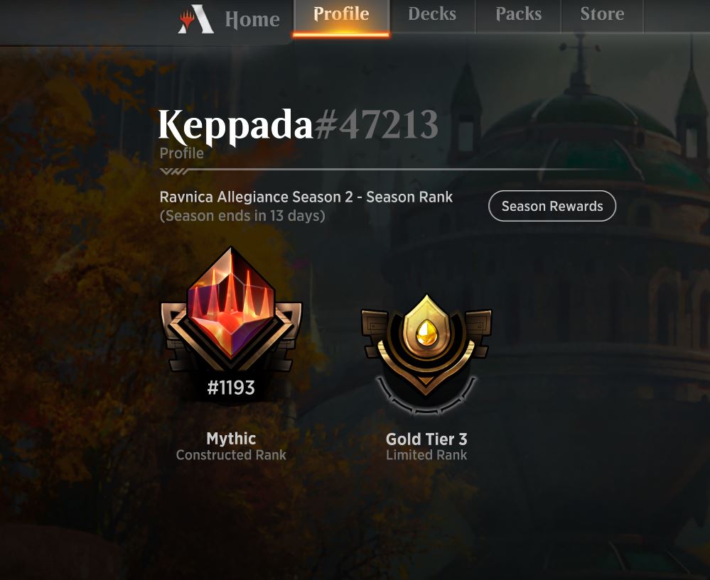 After Artifact died i started to learn @MTG_Arena . Just hit Mythic for the very first time! Next stop: top 100. Went from plat 4 -> mythic in one day with this sweet monoR list from @lucasfaley @arenadecklistspic.twitter.com/ID1ZIplEdm