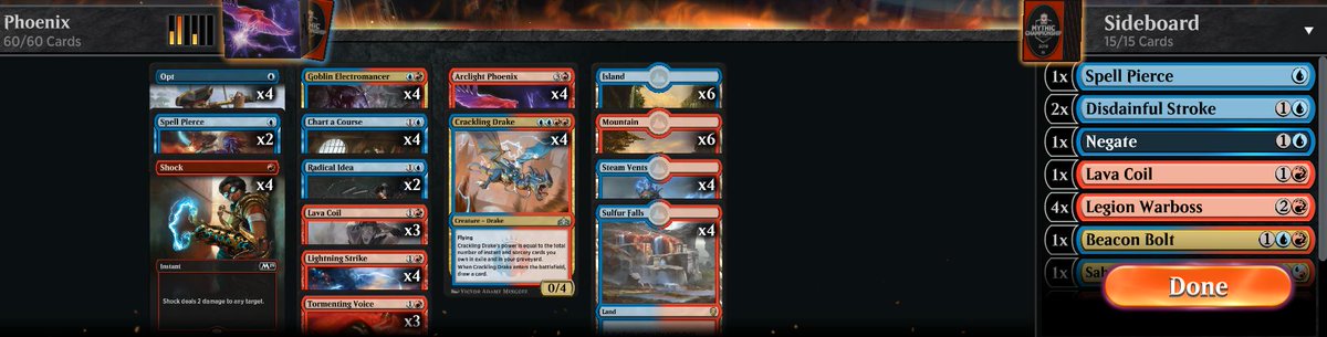 I´m hitting mythic every season in fewer games! This time thanks to this sweet Phoenix list from @JEDepraz. I feel like the deck can compete against anything when piloted correctly. Still unsure how to side in some matchups. @ArenaDecklistspic.twitter.com/fvQ1SZVnni