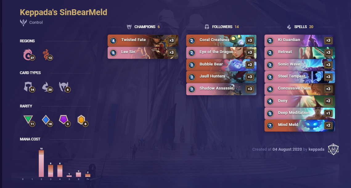I tried both MegaMogwai's version (Fizz/TF with Pilfered Goods) and this new Lee Sin one, and the Lee Sin one is hands down amazing. I found that this deck isn't about rushing the opponent down, and so Fizz wasn't that useful. I keep winning with Lee Sin level up, with Mind Meld!
