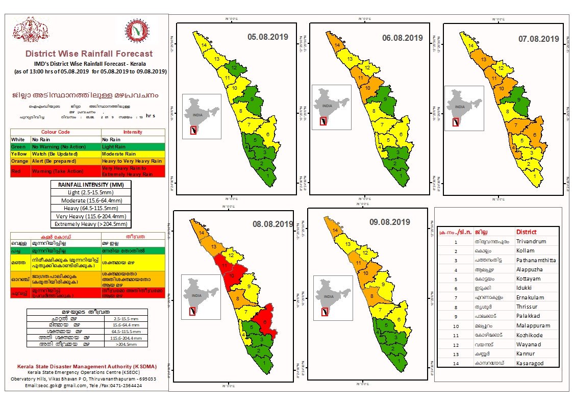 @IMDWeather has declared #Red, #Orange and #Yellow Alerts for various districts of Keralapic.twitter.com/2WBI7BofZO
