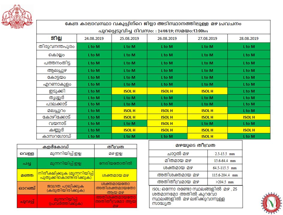 @IMDWeather, district wise rainfall forecast for various districts of #Keralapic.twitter.com/Q91fP8uyAc