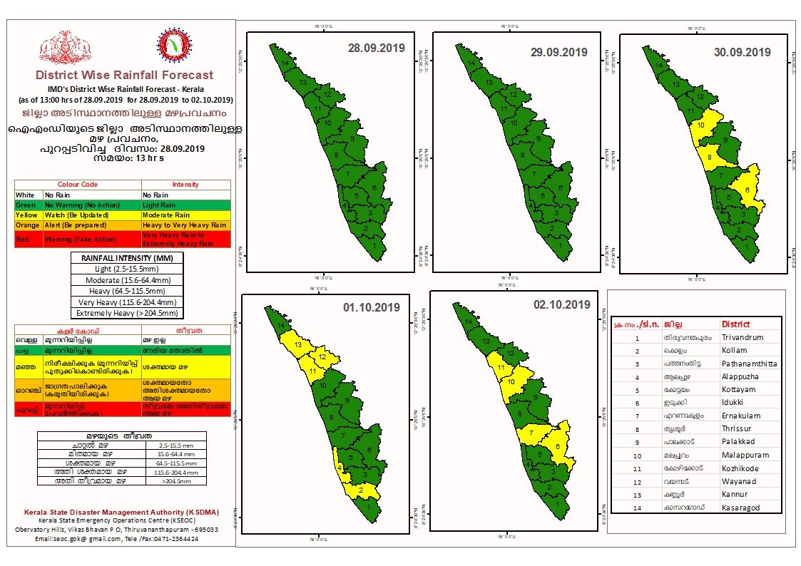 District wise rainfall forecast for various districts of Keralapic.twitter.com/bFJ9x04rHy
