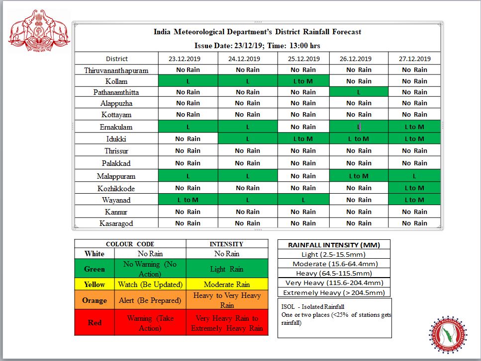 Kerala State Disaster Management Authority‏ @KeralaSDMA 23 Dec 2019