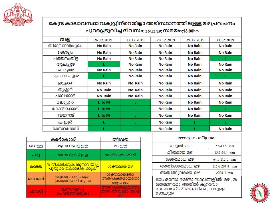 District Wise Rainfall Forecast For Various Districts Of Keralapic.twitter.com/9cTHsGNZNX
